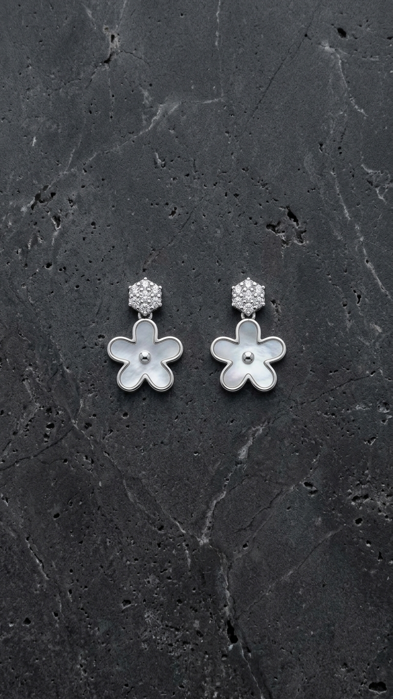 Designed with a shimmering crystal-studded top and a delicate floral drop, these earrings beautifully combine elegance with a soft feminine charm. The flower-shaped design features a smooth, pearl-like finish that enhances its subtle luxury, while the sparkling stud adds a touch of brilliance. Perfect for both everyday elegance and special occasions, these earrings complement ethnic as well as western outfits effortlessly.